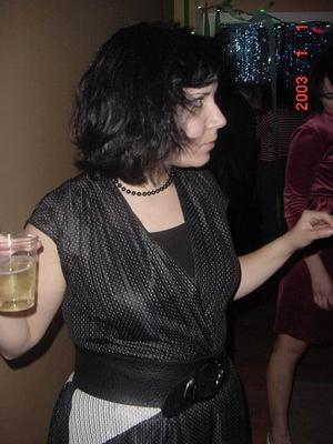 Two very good pictures of Larissa. She looks like Siouxsie in one of them, and like a TV newscaster in the other one. Radical.