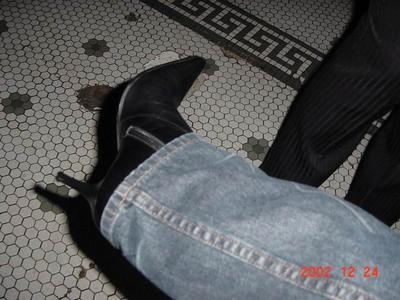 Well, I'm typing this on my new black keyboard, on my 1.8 gigahertz processor, 512 MB RAM, 48x read-write CD ROM and DVD drive, 128 MB video card, 80-gig hard drive new computer. Yowza! I've got a laser mouse, too. I'm still in Coquitlam (here till the 27th). Tonight Larissa and I are going Britpopping again. I have pictures of our trip to Milk and the Purple Onion on Monday. Clint drove us to Milk where we ran into Glen, this goth guy we knew in high school. We hung out and danced a bit. Sarah and Will were deejaying goth and industrial stuff. Then we went to the Purple Onion's britpop night, where we had to show two pieces of ID. Dumb. Joe Strummer had died the night before, so they played a lot of the Clash. The music there is more rock and Madchester than Luvafair, and the crowd is younger and more moddish and indierock. I like Luvafair better. Luvafair is more 80's and goth, and way less pretentious. It's closing down soon. Sadness.